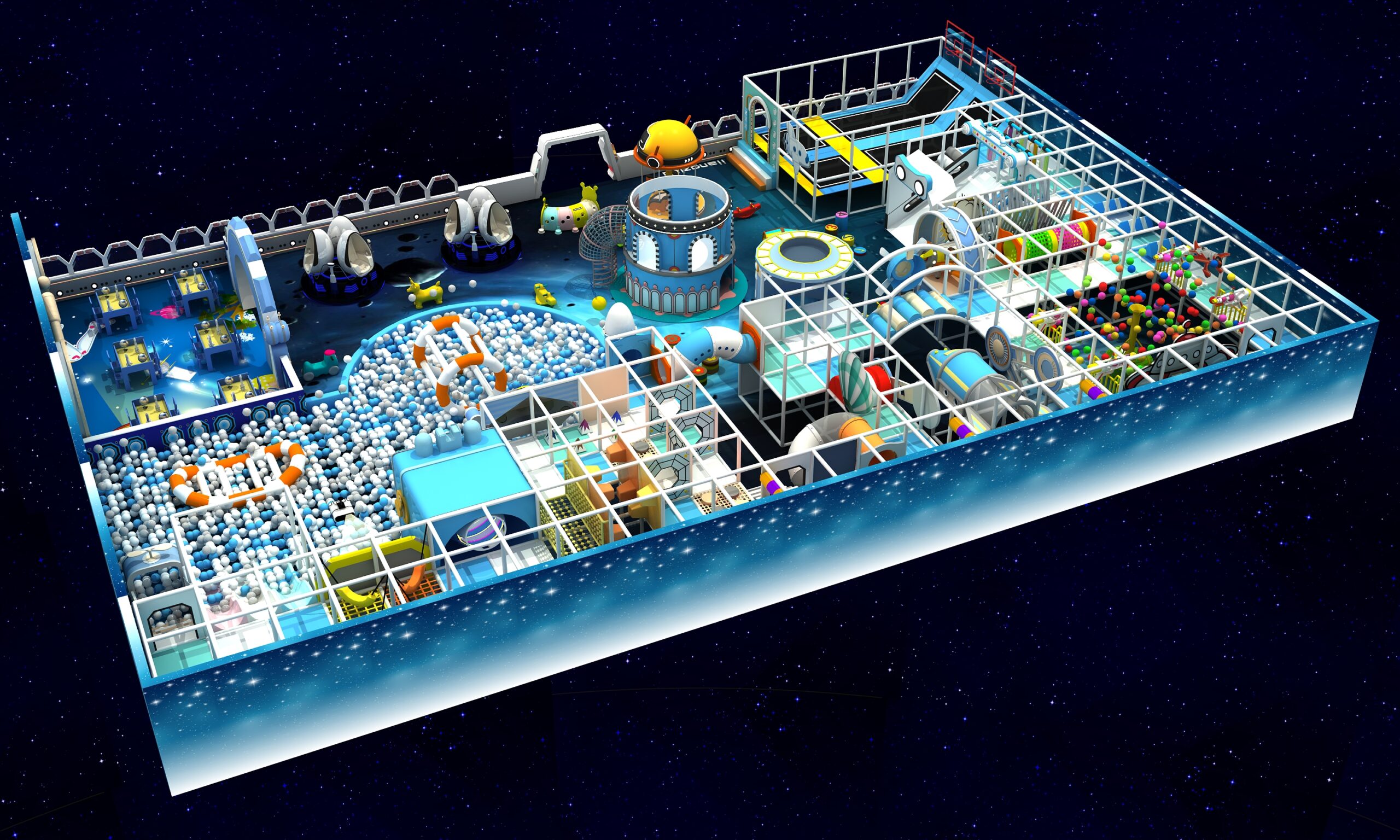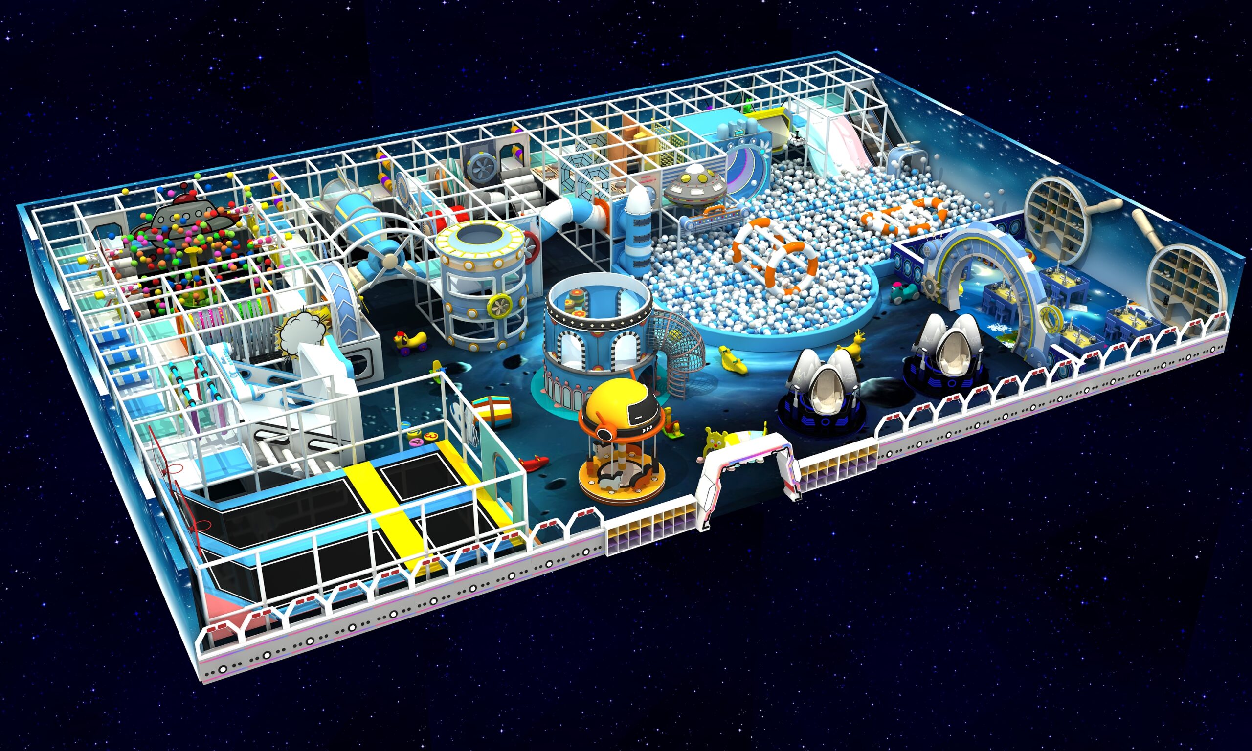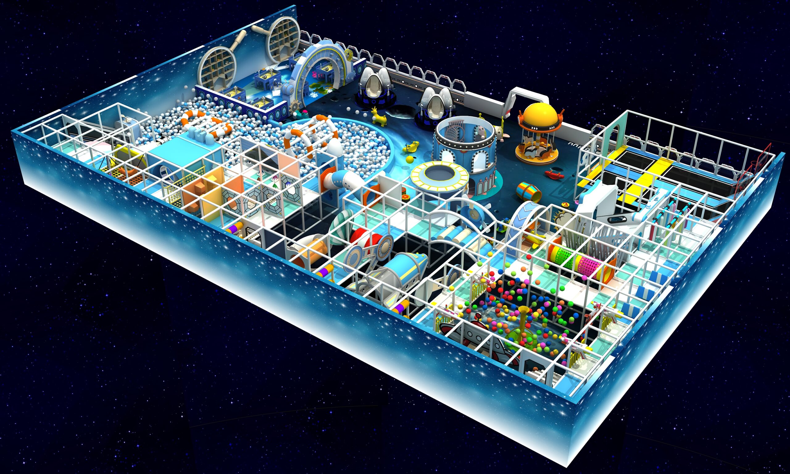 Suchen Sie einen thematischen Indoor-Spielplatz? Unser Weltraum-Indoor-Spielplatz bietet individuell gestaltbare Layouts und Designs im Galaxie-Stil. Er vereint interaktive Spiele, körperliche Aktivitäten und fantasievolles Spielen. Es ist der perfekte Ort für Kinder, um den ganzen Tag in einer sicheren Umgebung zu spielen und den Eltern so eine dringend benötigte Auszeit zu ermöglichen brechen!